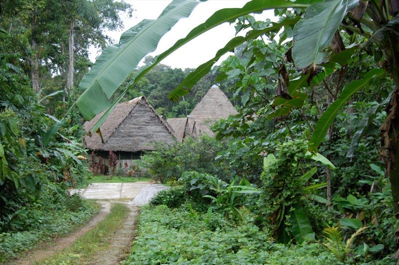 Perfect thatched roofs come into view underneath as we descend toward Iquitos at what cinematographers call “the magic hour.” I’ve never been to a dimension quite like this. I was called here by what felt like the Earth itself. Some people will understand a statement like that and some won’t. Sensing “the Call,” especially from a nonhuman entity — from a planet, no less — may be considered a bit farfetched by some, insane by others. And yet I know I’m not the only one who understands that this sort of ancient animism may hold the key to the future, if our species wants to survive.