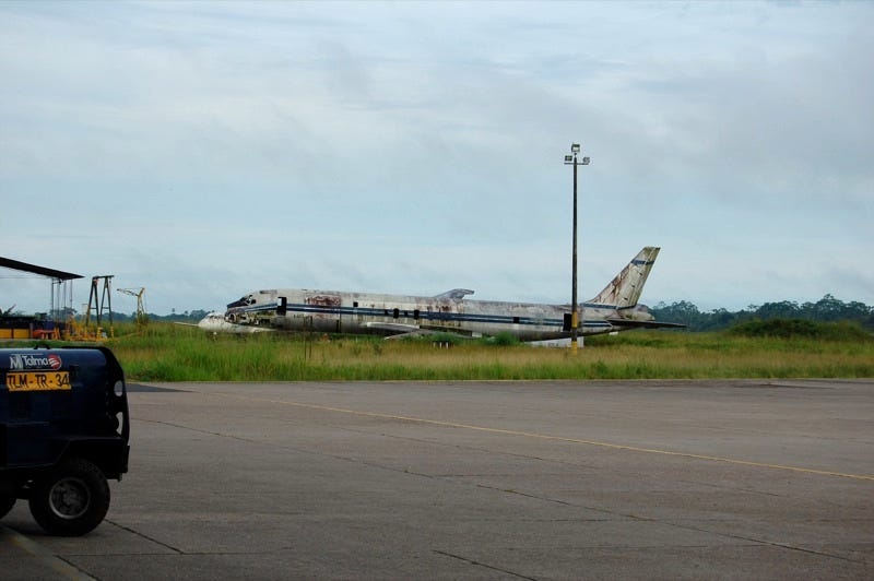 When we land, the burnt wreckage of a commercial airliner at the end of the runway actually makes me more certain: This is the right place, the right time, and it is all unknown!